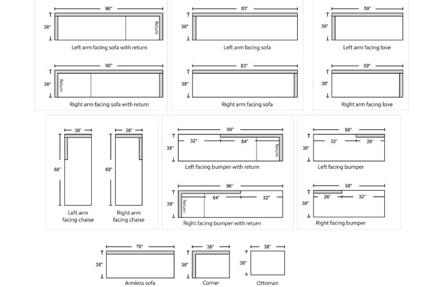 | 1 arm sofa with return | 96 | 38 | 35 | 15 |