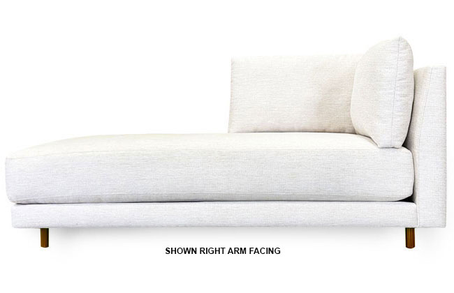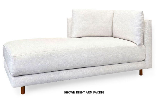 This stand-alone chaise is available right or left facing. It has a back and side pillow. All seams are top stitched. Products meet the requirements of the Bureau of Household Goods and Services Technical Bulletin No. 117-2013.