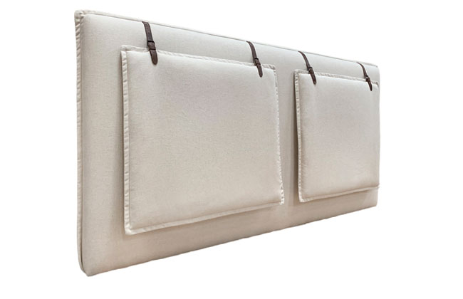 This wall mount headboard features 3/4" flange seams and two decorative cushions. These cushions are attached with leather straps. The headboard and cushions are covered with fabric front and back. AVAILABLE IN FOUR HEIGHTS. THE LAST 2 DIGITS OF THE STYLE NUMBER INDICATE THE HEIGHT. STYLE 271-32, 271-38, 271-42, OR 271-50. ALL ARE WALL MOUNT HEADBOARDS. Products meet the requirements of the Bureau of Household Goods and Services Technical Bulletin No. 117-2013.
