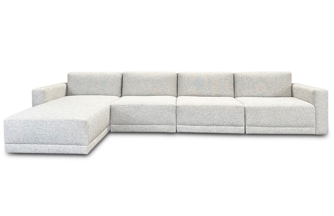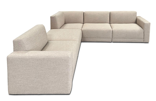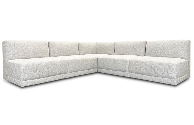 This modular collection features a 4" band on the bottom and an overall height of 33". All pieces can be attached to one-another with sectional connectors or stand individually. Corner ottoman has four seams around top edge (no waterfall front). *Chaise has a seam across the top of the seat cushion.* All frames corner blocked. Products meet the requirements of the Bureau of Household Goods and Services Technical Bulletin No. 117-2013.