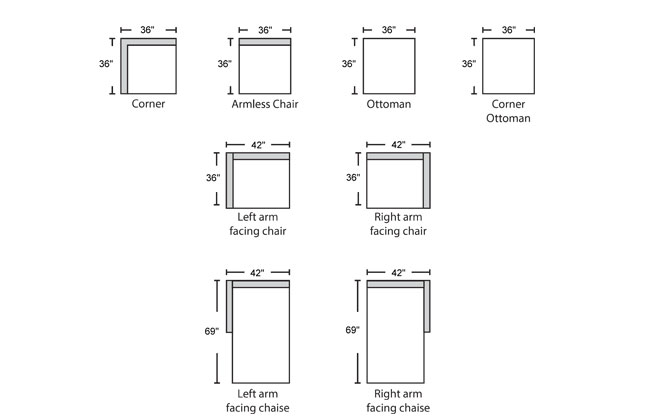 | Corner Ottoman | 36 | 36 | 18 | 3 |