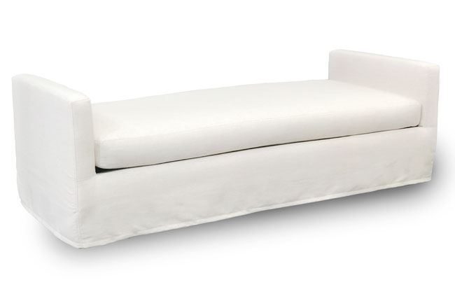 This bench features top stitching, a hardwood frame, and an upholstered slipcover. Available in two sizes: small bench or large bench. Products meet the requirements of the Bureau of Household Goods and Services Technical Bulletin No. 117-2013.