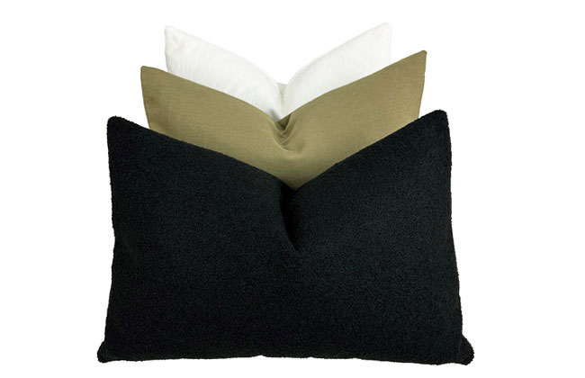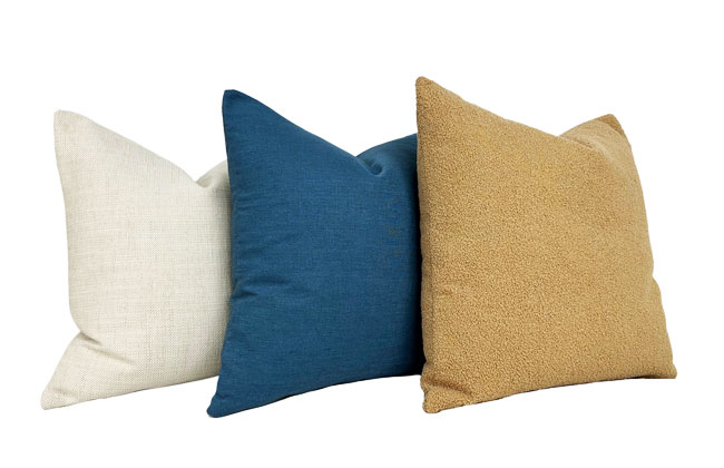 Knife edge pillows with zipper closure. Choose a feather/down OR down-alternative insert. If no selection is specified, a feather/down insert will be used. Bolster pillow has a foam insert & welt. Pillows are offered in six sizes: 26" x 26", 24" x 24", 22" x 22", 20" x 20", 14" x 22", & 6" x 23" bolster.