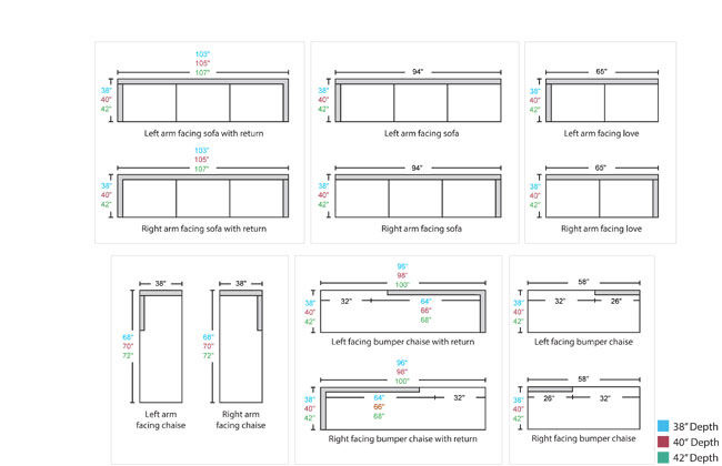| Sofa | 94 | 38/40/42 | 36 | 15.5 |