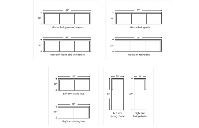 | 1 arm sofa with return | 90 | 38 | 37 | 16.5 |