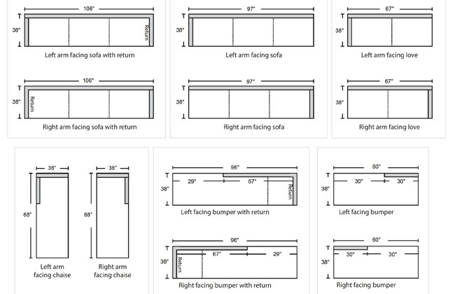 | 1 arm sofa with return | 106 | 38 | 30 | 17 |