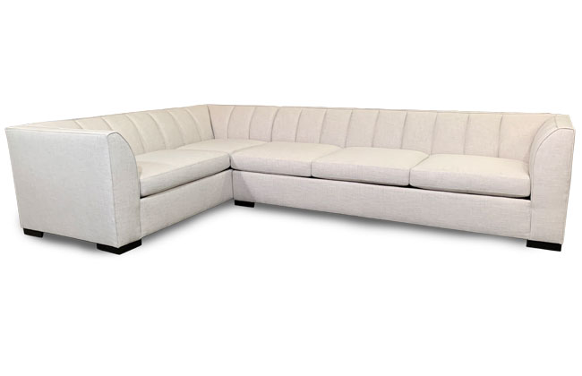 This channel tufted style is sleek and sophisticated. The overall depth is 38" which provides an ample seating depth of 27". **DUE TO THE NATURE OF THE CHANNELS, LENGTH INCREASES OR DECREASES NEED TO BE IN INCREMENTS OF 10".** *SEE ALTERNATE IMAGES FOR SECTIONAL LAYOUT OPTIONS* *PLEASE NOTE: SECTIONAL WILL HAVE 3 CUSHIONS WHILE SOFA & LOVE WILL HAVE 2 CUSHIONS.* All frames corner blocked. Products meet the requirements of the Bureau of Household Goods and Services Technical Bulletin No. 117-2013.