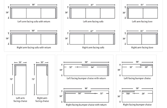 | 1 arm sofa with return | 99 | 38 | 35 | 16.5 |