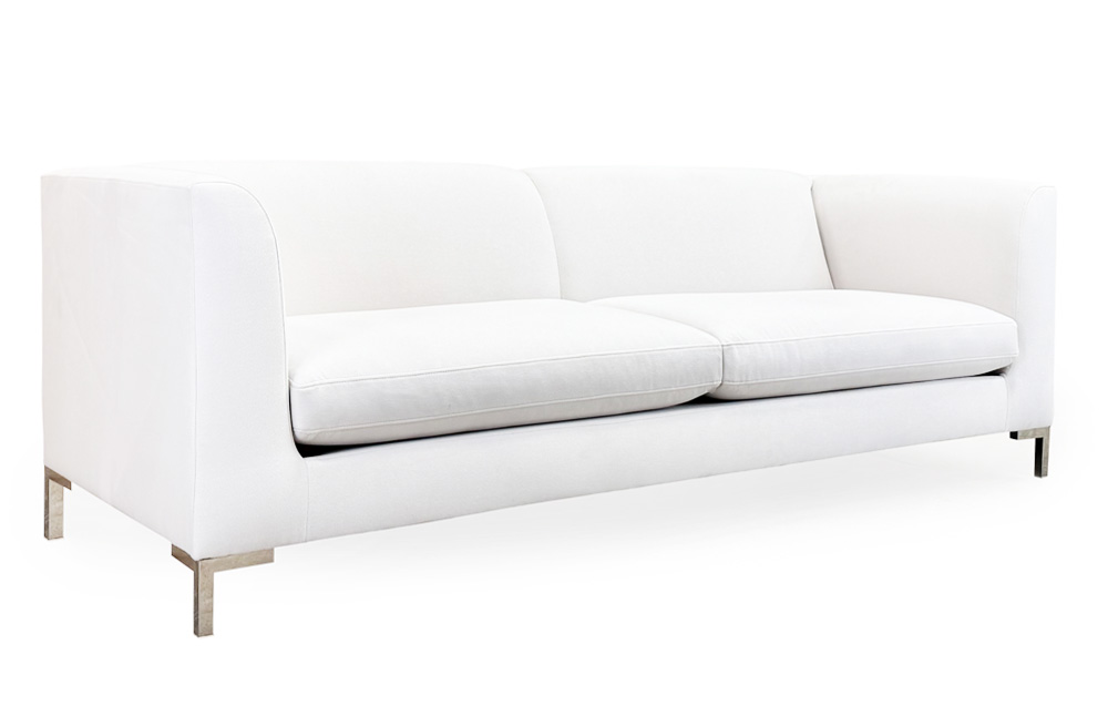 This style features curved-tapered arms and a tight back. Also featuring stainless steel legs and top stitching. Seat cushions are convoluted foam for support and durability. *SEE ALTERNATE IMAGES FOR SECTIONAL LAYOUT OPTIONS* *PLEASE NOTE: SECTIONAL WILL HAVE 3 CUSHIONS WHILE SOFA & LOVE WILL HAVE 2 CUSHIONS.* All frames corner blocked. Products meet the requirements of the Bureau of Household Goods and Services Technical Bulletin No. 117-2013.
