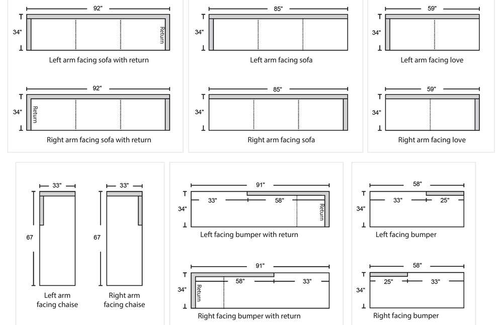 | 1 arm sofa with return | 92 | 34 | 29 | 12.5 |